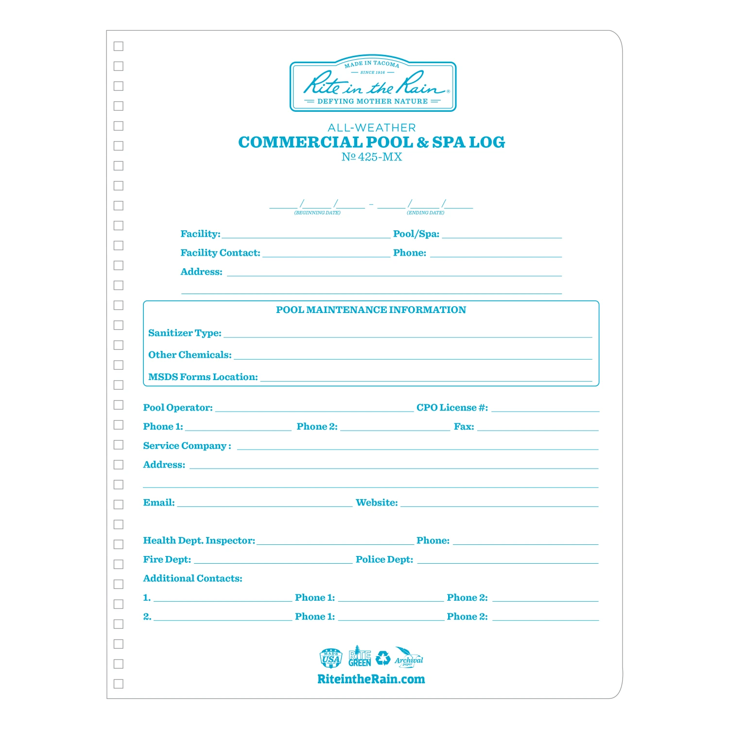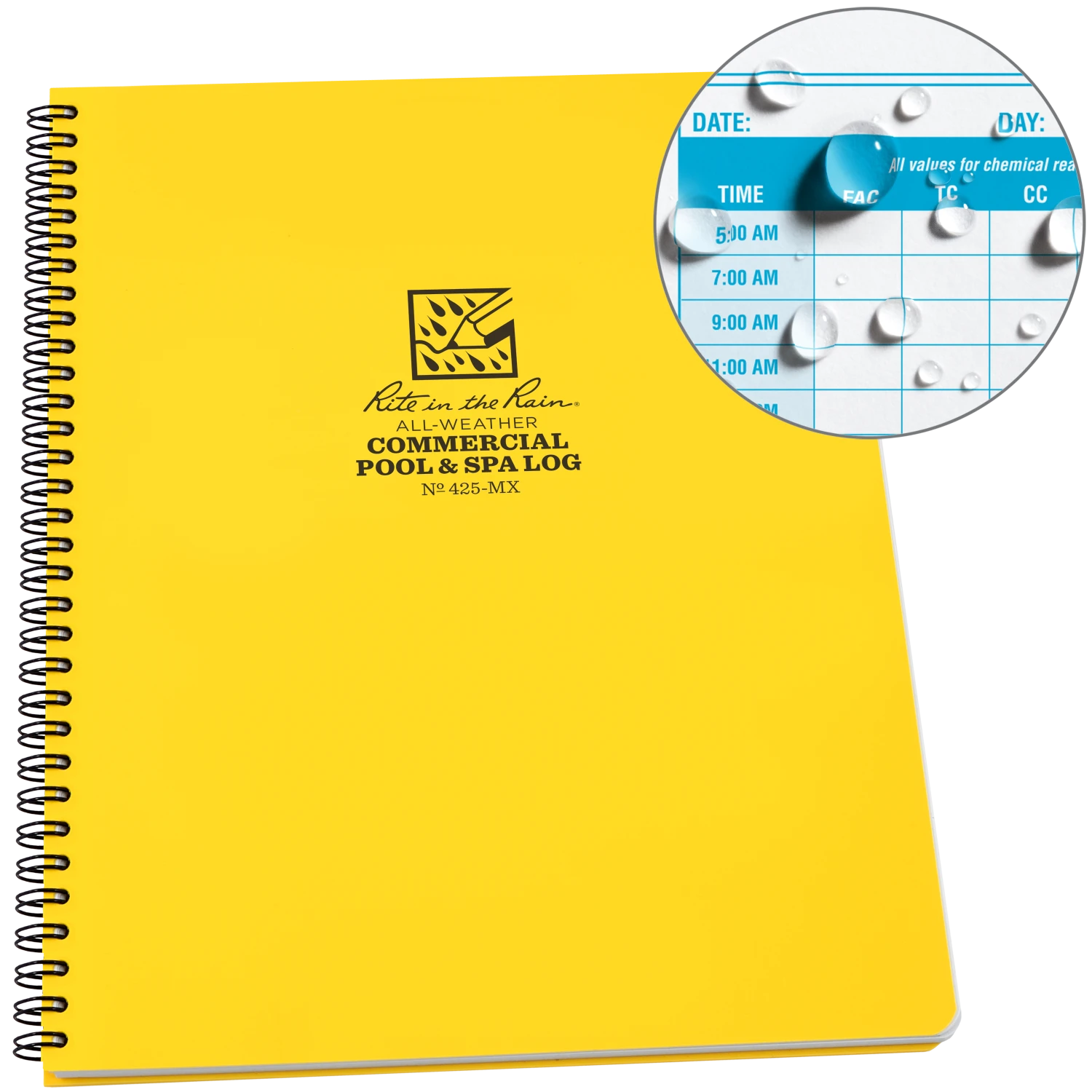 Waterproof Notebooks Rite In The Rain Weatherproof Side Spiral Notebook, 8.5 In. X 11 In. Commercial Pool & Spa Maintenance Log